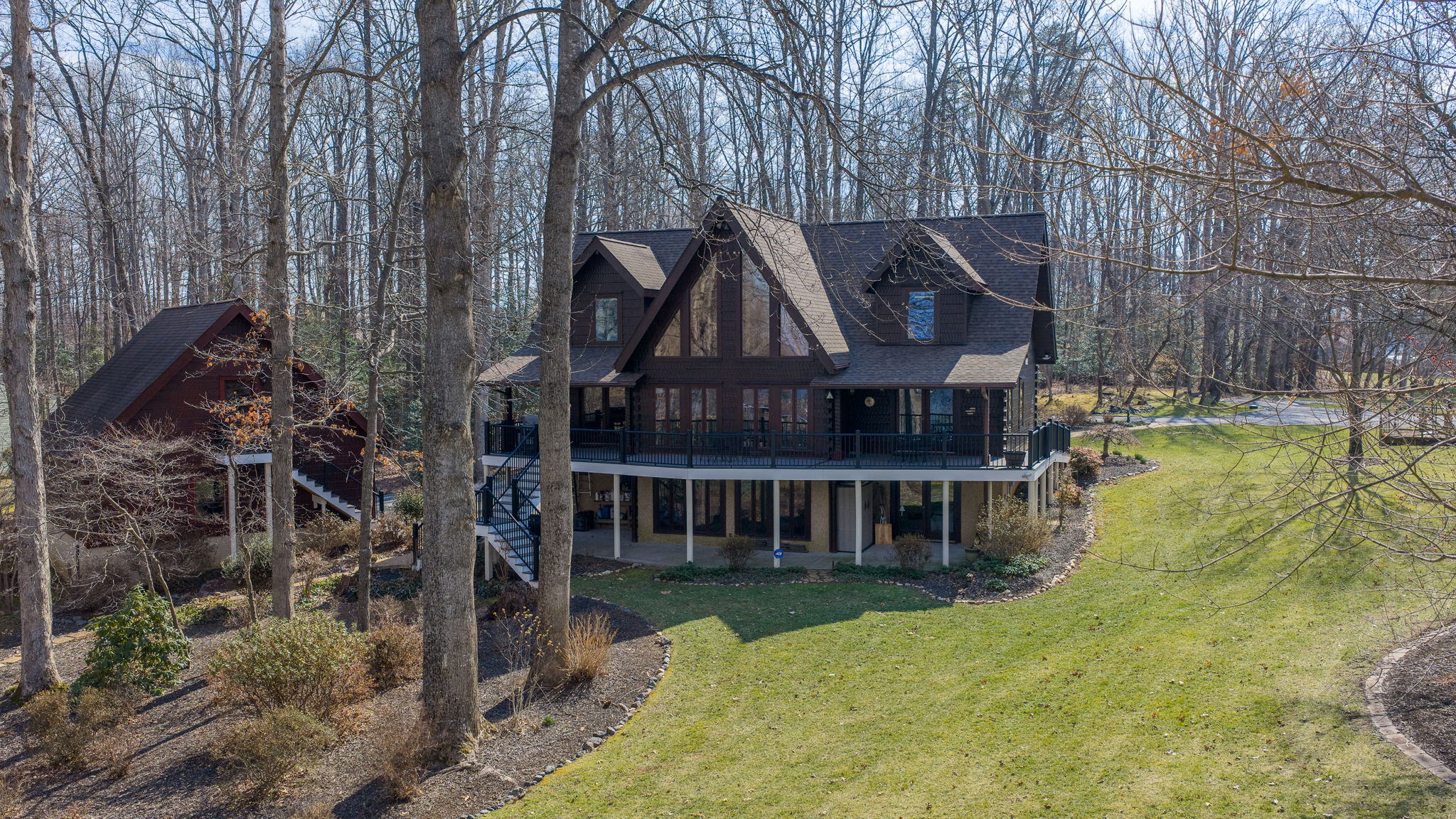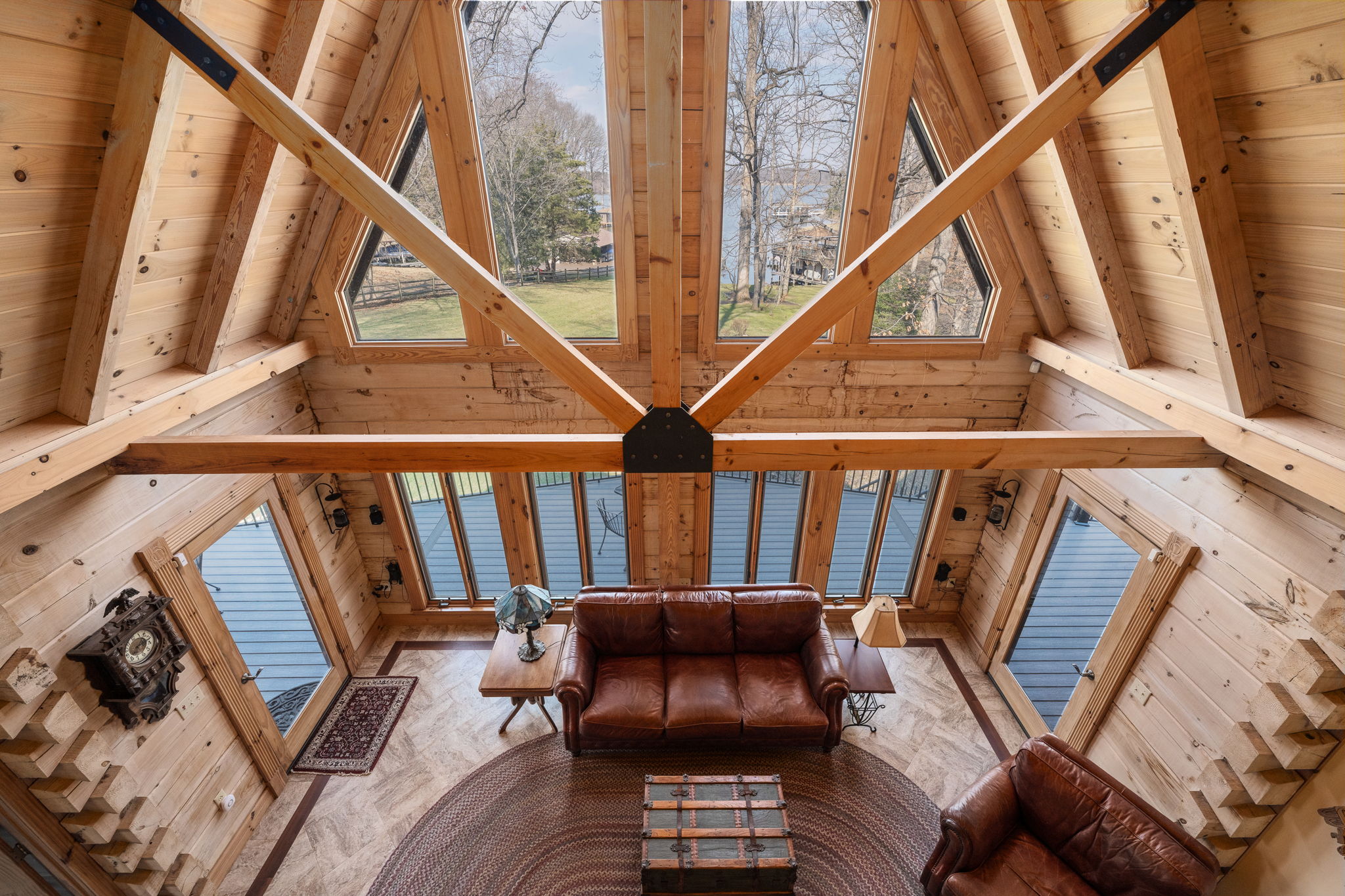 Welcome to your private waterfront retreat on the public side of Lake Anna in sought after Tara Woods community, where every day feels like a getaway and lake living becomes your lifestyle. Tucked away on two combined lots totaling over 2 acres, this meticulously maintained Jim Barna log home is a rare blend of craftsmanship, comfort, and connection to the water. Built with impressive 6x12 hewn dovetail construction in classic post-and-beam construction, the home radiates warmth and authenticity from the moment you arrive. A manicured approach, with mature trees and lush landscaping, welcomes you in with a paver-edged circular drive and generous car park—setting the tone for the thoughtful details found throughout. Step inside and be immediately drawn to the soaring cathedral ceilings and long, tranquil views of the lake.